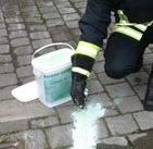 Aufnahmefähigkeit und kann per Hand oder mit herkömmlichen Streuwagen ausgebracht werden. Ohne Risiko sofort einsetzbar bei Chemikalienunfällen und überall dort, wo mit gefährlichen Stoffen